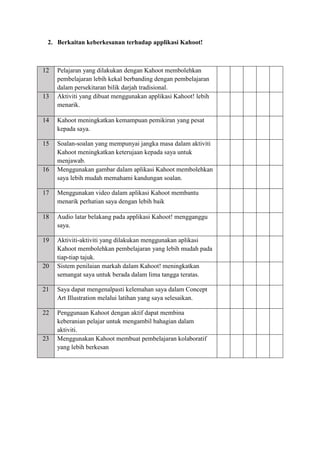 Penyelidik mengambil contoh format soalan ini untuk mengukur. Bahagian A aspek motivasi. Soalan kaji selidik keberkesanan program kuora o.